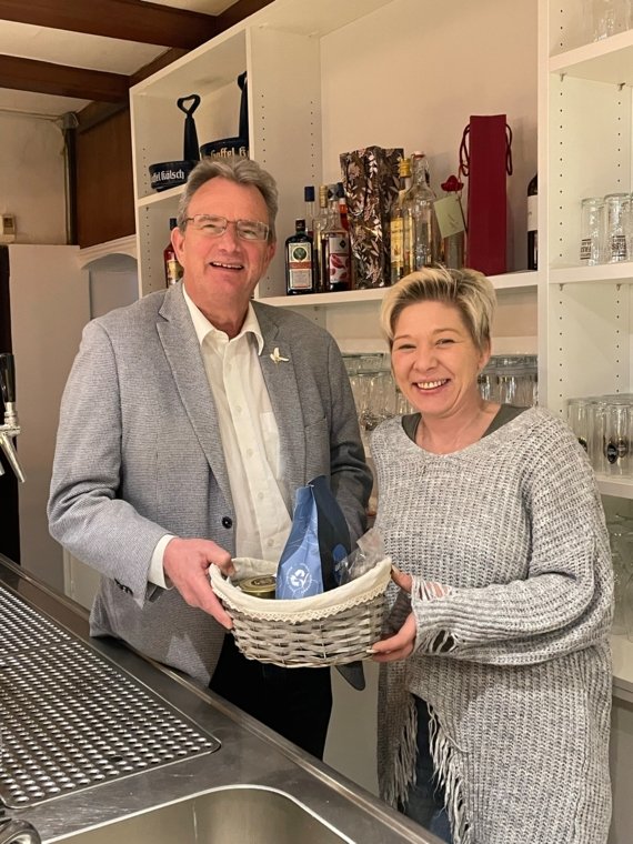 Wirtschaftsförderer Tobias Voits sowie TROWISTA-Geschäftsführer Wolf-Dieter Grönwoldt freuen sich, die Wiedereröffnung der Traditionsgaststätte bekannt zu geben, die einst das Herz des Dorf- und Vereinslebens bildete und zukünftig auch wieder sein soll.