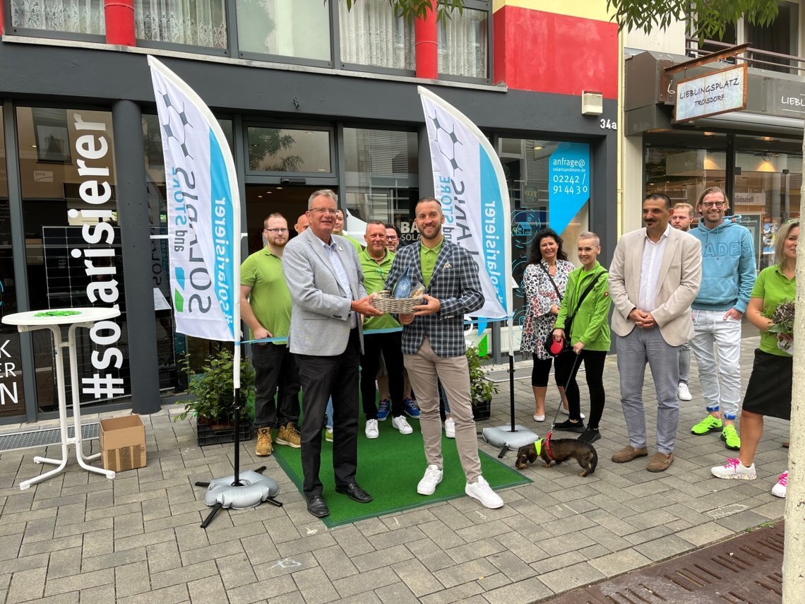 Seit dem 16.7.2022 ist die SOLARIS and more GmbH, ein Photovoltaikanbieter mit Hauptsitz in Hennef, nun auch mit einer stationären Dependence in der Troisdorfer Innenstadt vertreten. Symbolisch durchtrennte der stellvertretende Bürgermeister Erkan Zorlu gemeinsam mit Markus Bolle, Geschäftsführer von SOLARIS and more GmbH das Absperrband bei der offiziellen Ladenlokaleröffnung in der Kölner Str. 34a. „Wir sind sehr froh, dank der Vermittlung durch die TROWISTA und dem NRW-Sofortprogramm nun auch in der Troisdorfer Fußgängerzone mit einem Geschäft vertreten zu sein und den Kunden direkt vor Ort von unserem Service rund um Photovoltaik und Solarstrom überzeugen zu können“, so Bolle.