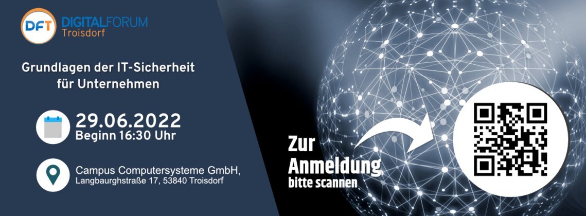 Dies ist eine spannende Einführungsveranstaltung in den Bereich "IT-Sicherheit". In Zukunft sind weitere Blöcke zu Themen wie z. B. "IT-Sicherheit als Wettbewerbsvorteil", "Social Engineering", "Backup & Recovery" und "IT-Infrastruktur" geplant. Sie haben darüber hinaus die Möglichkeit, Ihre Wunschthemen oder Fragen aus dem Bereich IT-Sicherheit bei der Anmeldung zu der Veranstaltung vorab anzugeben.