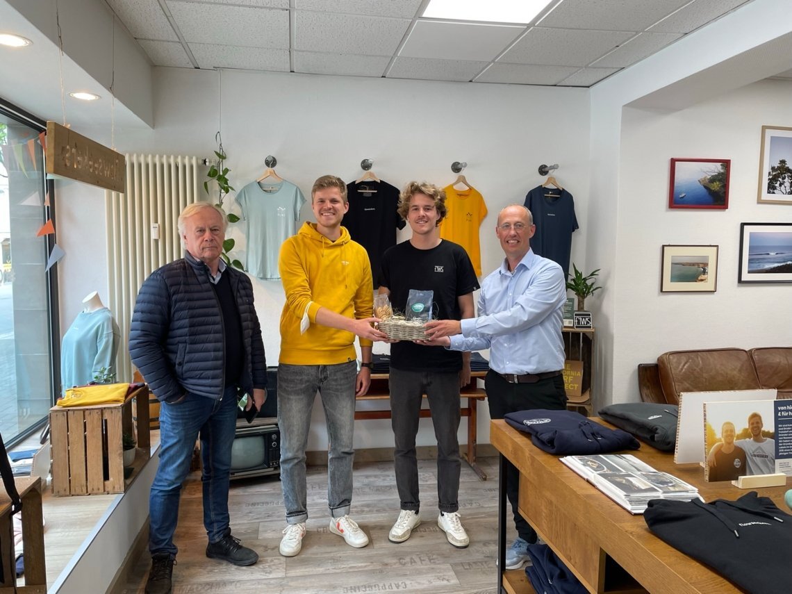 Von links: Jörg Ennenbach (Inhaber Ladenlokal Kölner Str. 70), Vincent Schulte-Kellinghaus und sein Bruder Kornelius, Stephan Frings (TROWISTA)