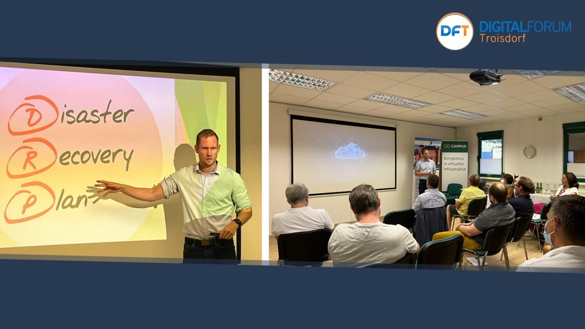 Die TROWISTA lud am 25. August im Rahmen der Veranstaltungsreihe DigitalForum Troisdorf (DFT) zu der Informations- und Netzwerkveranstaltung „IT-Sicherheit: Wie schütze ich meine Daten?“ ein. Gastgeber der Veranstaltung war diesmal das Troisdorfer Systemhaus Campus Computersysteme GmbH. Referent Timo Fischer, IT-Consultant der Campus Computersysteme GmbH, hielt zunächst eine spannende Keynote zum Thema Backup & Desaster Recovery. Dabei sprach er vor allem über sinnvolle Strategien zur Sicherung von Daten für Unternehmen und gab wertvolle Tipps für die Umsetzung.
