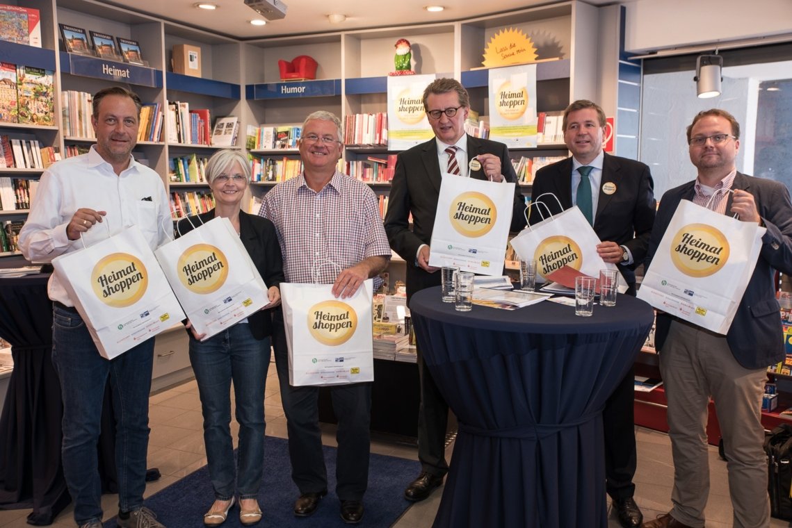 Die „Heimat shoppen“-Papiertaschen, Flyer, Anstecker und Plakate zeigten sich an den beiden Tagen vielfach im Stadtbild.
