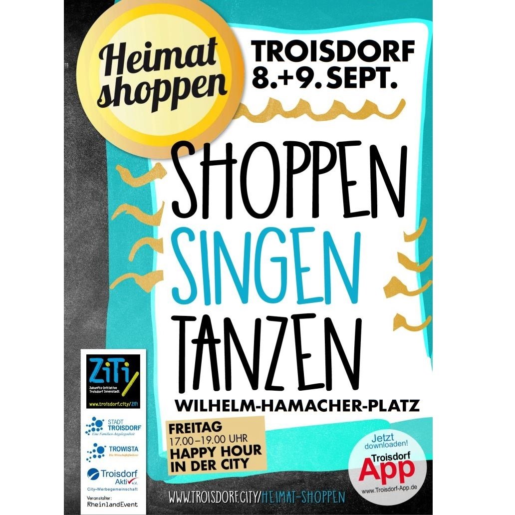 Ein pralles Unterhaltungsprogramm erwartet die Besucher auf dem Wilhelm-Hamacher-Platz am Freitag, 8. September, und am Samstag, 9. September. Anlass ist der Aktionstag „Heimat shoppen“. Er soll Aufmerksamkeit für den stationären Einzelhandel schaffen. Ausgerichtet wird das Troisdorfer Live-Event von der RheinlandEvent UG in Kooperation mit der Stadt Troisdorf, der Werbegemeinschaft Troisdorf Aktiv, der Wirtschaftsförderungsgesellschaft TROWISTA und der Zukunfts-Initiative Troisdorf Innenstadt, ZiTi.