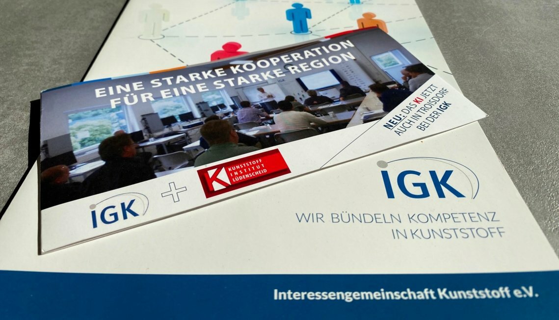 Das 1988 in Lüdenscheid gergündete Kunststoff-Institut verknüpft Wissenschaft und Fertigung, um die neuesten Trends in die Unternehmen zu bringen. Im Cluster des KI befinden sich ungefähr 380 namhafte Unternehmen. Die 2002 gegründete Interessengemeinschaft Kunststoff IGK e.V. ist eine aktive Kooperation von 45 Unternehmen der Kunststoffbranche, die mehrheitlich in der Region „Bonn/Rhein-Sieg“ ansässig und ihr verbunden sind. Aufgabe des IGK-Verbundes ist der Erhalt und der Ausbau der Wettbewerbsfähigkeit der Mitgliedsunternehmen.