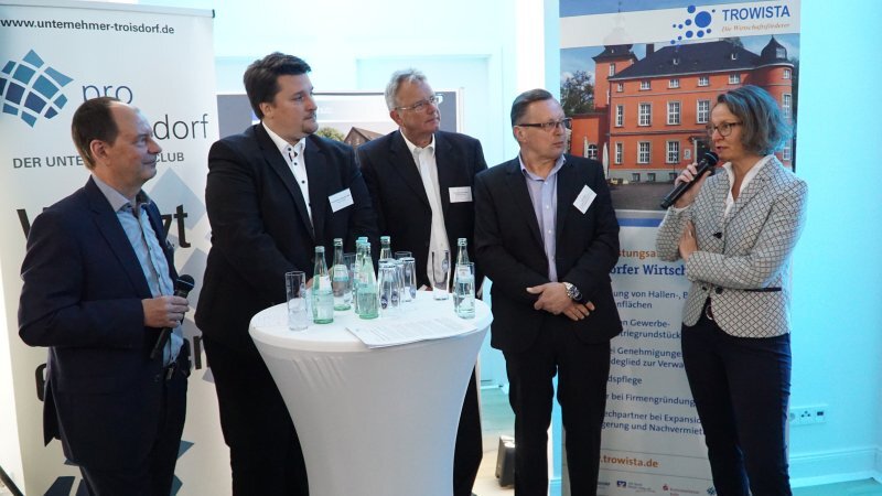 Die Gerling & Schütz Immobilien- und Beteiligungsgesellschaft mbH des Troisdorfer Bauträgers und Investors Eric Schütz stellte sich am 26. April bei einem Unternehmer-Frühstück des Unternehmer-Clubs pro Troisdorf und der Wirtschaftsförderungsgesellschaft TROWISTA mit aktuellen Projekten vor. Zum Termin im Gut Kerpenhof, Troisdorf-Kriegsdorf, kamen auch Landesbauministerin Ina Scharrenbach und die Landtagsabgeordnete Katharina Gebauer.