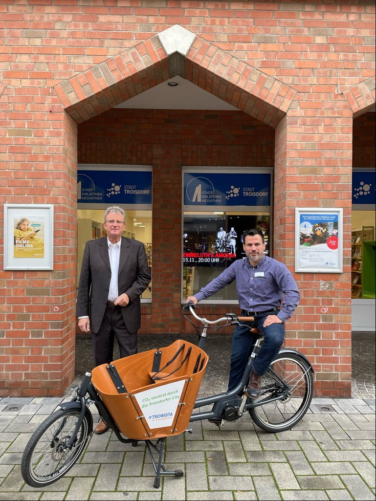 „Mit der Bereitstellung des E-Lastenrades wollen wir den Troisdorfer Bürgerinnen und Bürgern eine Möglichkeit geben, Einkäufe und Waren aus der Innenstadt problemlos, unkompliziert und gleichzeitig klimaschonend nach Hause zu bringen. Wir freuen uns, wenn das Rad rege genutzt wird und wir so zur Belebung der Innenstadt beitragen können“, so Wolf-Dieter Grönwoldt, Geschäftsführer der Troisdorfer Wirtschaftsförderungs- und Stadtmarketing GmbH (TROWISTA).