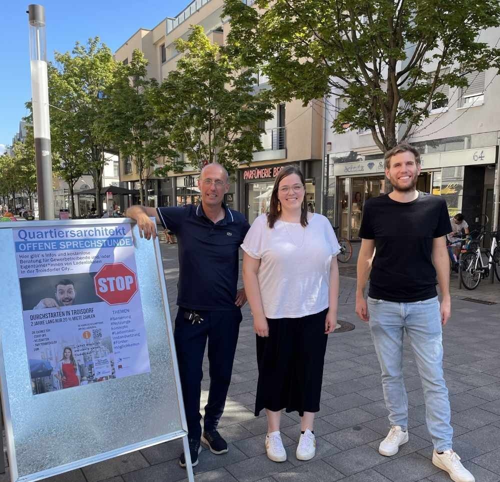 Die Stadt Troisdorf hat den Quartiersarchitekten im Rahmen des NRW Förder-Sofortprogramms zur Belebung der Innenstadt einbestellt. Er soll u. a. helfen, weitere Eigentümer*innen von Ladenlokalen dazu zu bewegen, sich dem Förderprogramm anzuschließen. „Bei unserem Sofortprogramm müssen die Eigentümer*innen bereit sein, auf 30 Prozent der Altmiete zu verzichten. Dann kann die Stadt die Ladenlokale befristet auf zwei Jahre anmieten und damit den Mietpreis für Mieter*innen auf 20 Prozent der Altmiete senken. Die Unterstützung durch den Quartiersarchitekten dürfte vor allem für die Ladenlokalbesitzer ein Mehrwert sein, die damit den Mietausfall eventuell kompensieren können“, so Trowista-Geschäftsführer Wolf-Dieter Grönwoldt.