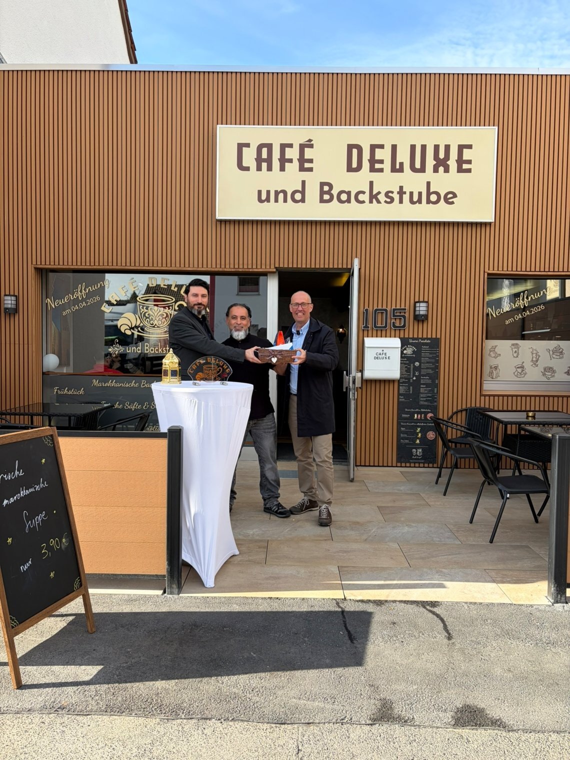 Unterstützung kam von Vermieter Veysel Akyol, der das Projekt von Anfang an begleitet hat. „Es ist schön, dass wir hier einen Hauch von Orient in die Hauptstraße bringen konnten“, sagt Akyol. Dass die Umsetzung zügig gelang, liegt auch an seiner weiteren Rolle: Als Quartiersarchitekt (Akyol Architektur) in Troisdorf berät er Gewerbetreibende bei Fragen rund um Nutzungsänderungen und Umbauten – ein Angebot, das auch beim „Café Deluxe“ konkret geholfen hat. „Ich habe hier viel Unterstützung bekommen, gerade bei den formalen Themen“, so Attahiri.