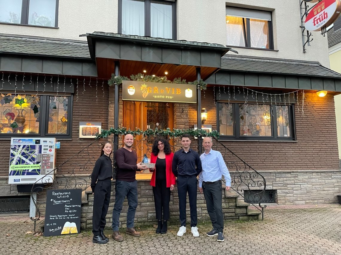 v.l.n.r. Köchin Andrea, Wirtschaftsförderer Tobias Voits (TROWISTA GmbH), Geschäftsführerin Gabriela Rentea, Restaurantleiter Ian sowie Zentrenmanager Stephan Frings (TROWISTA GmbH)