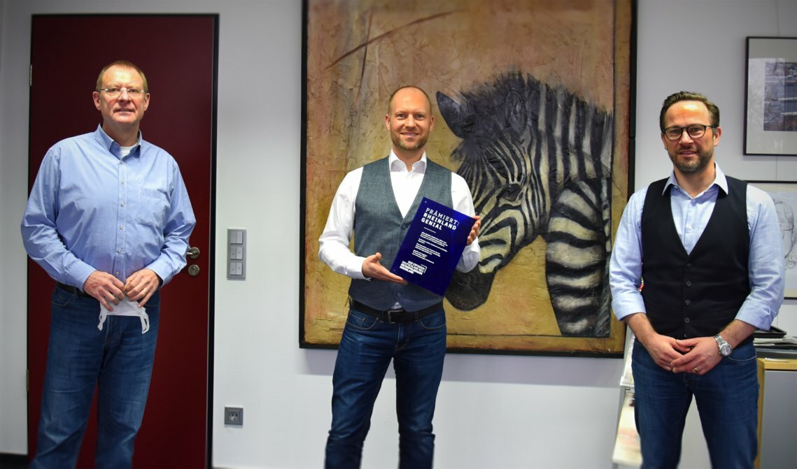 (von links nach rechts): Ulrich Kremer (Geschäftsführer Silver Plastics), Sebastian Kremer, Michael Krämer (Geschäftsführung Technik Silver Plastics) mit dem Award. (Bild: Rhein-Sieg-Kreis)