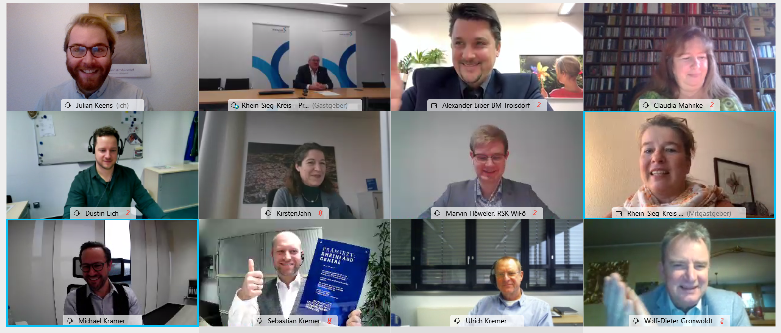 Online Preisverleihung mit Landrat Sebastian Schuster und Bürgermeister Alexander Biber (2. und 3. v.l. in der ersten Zeile (Bild: TROWISTA)