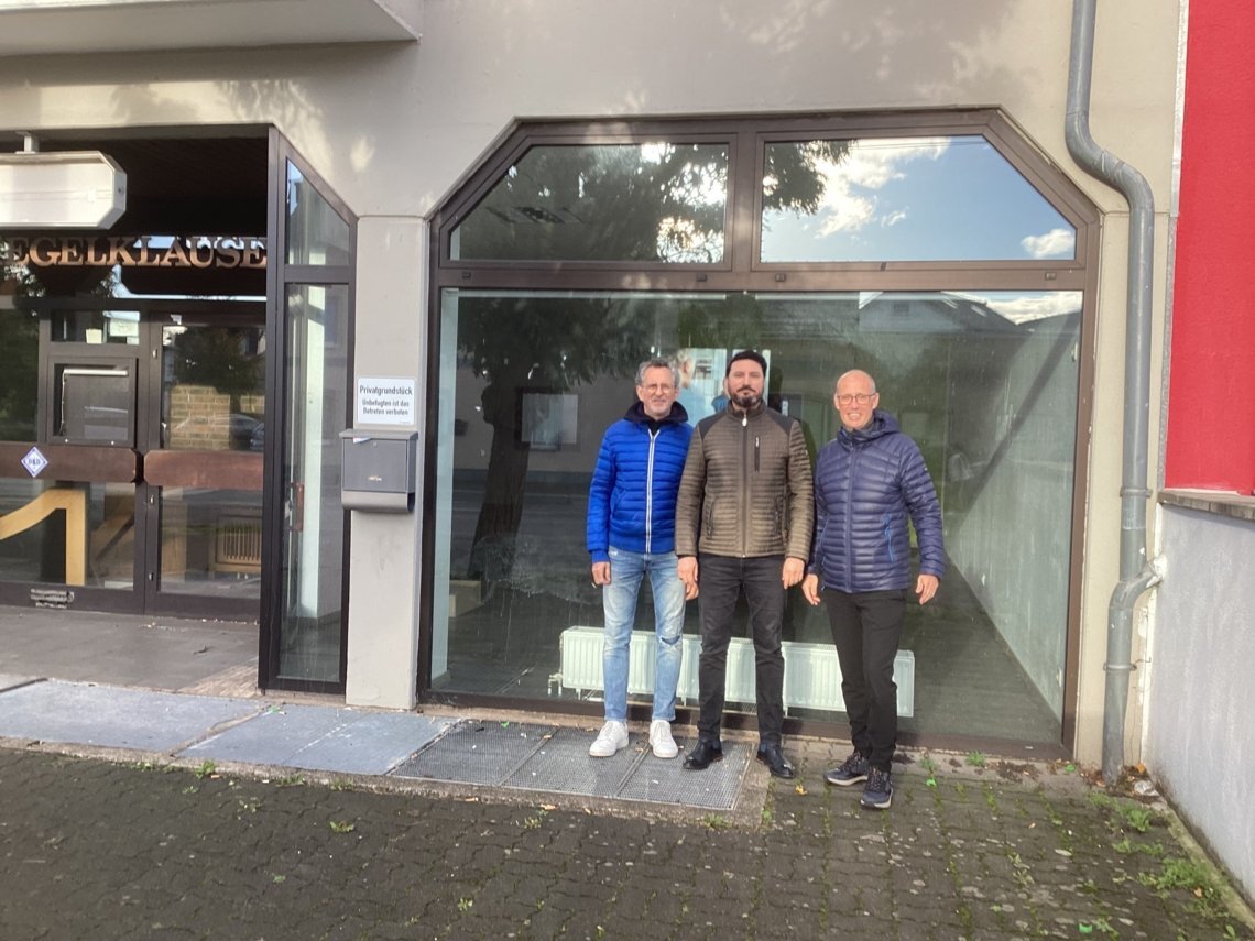 Besuch in Spich bei schönem Herbstwetter: v. l.: Wolfgang Berger (Für Haare, Zentrenbeiratsmitglied), Veysel Akyol (Akyol Architektur) und Stephan Frings (Trowista, Zentrenmanager)