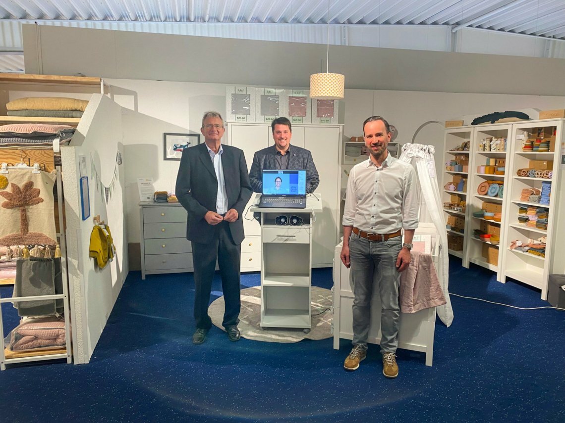 Trowista-Geschäftsführer Wolf-Dieter Grönwoldt, Bürgermeister Alexander Biber und Marco Bottosso-Kraft (v.l.n.r.) stellen den neuen lokalen Online-Marktplatz vor. Foto: Stadt Troisdorf
