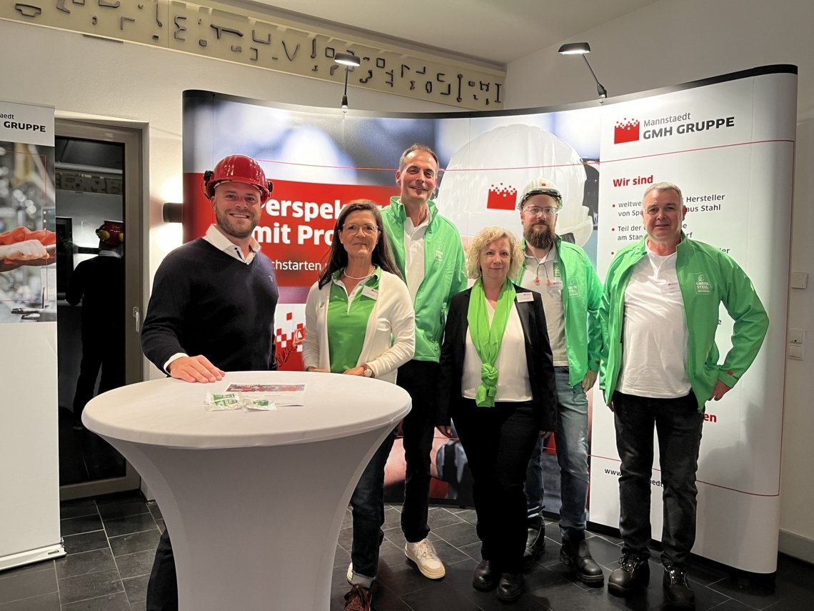 Auf dem Produktionsgelände der Mannstaedt GmbH wurde Wirtschaftsförderer Tobias Voits (1.v.l) von Geschäftsführer Thomas Leven (3.v.l) und seinem Team freundlich begrüßt und in die Tiefen der Stahlwelt eingeführt.