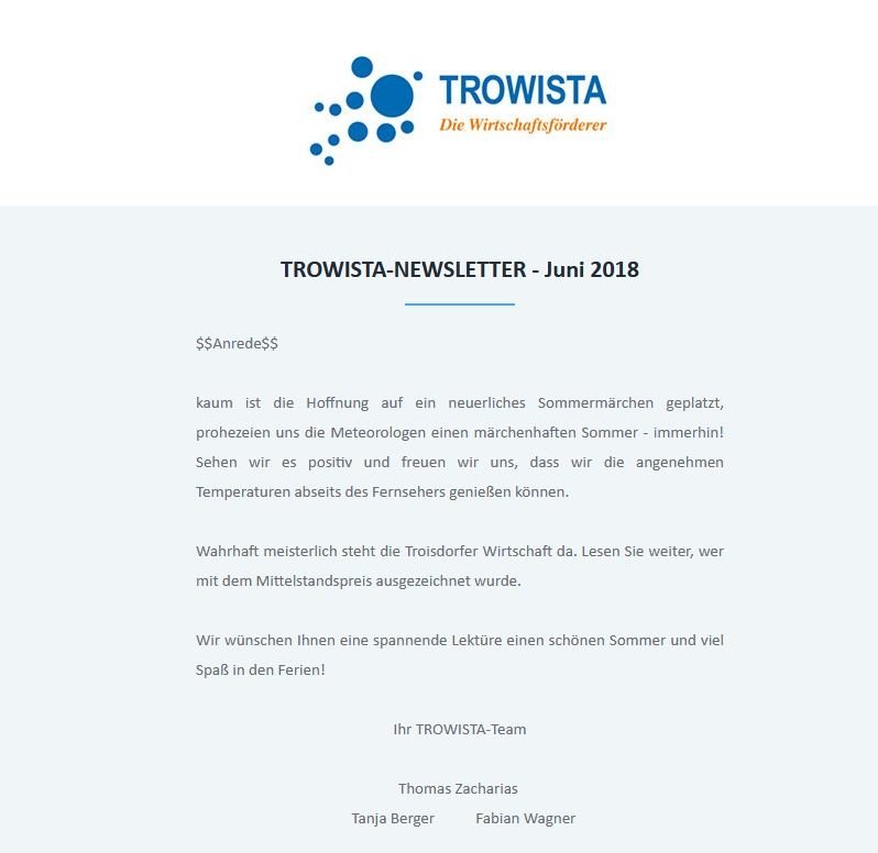 Den TROWISTA-Newsletter vom 29.06.2018 finden Sie hier.