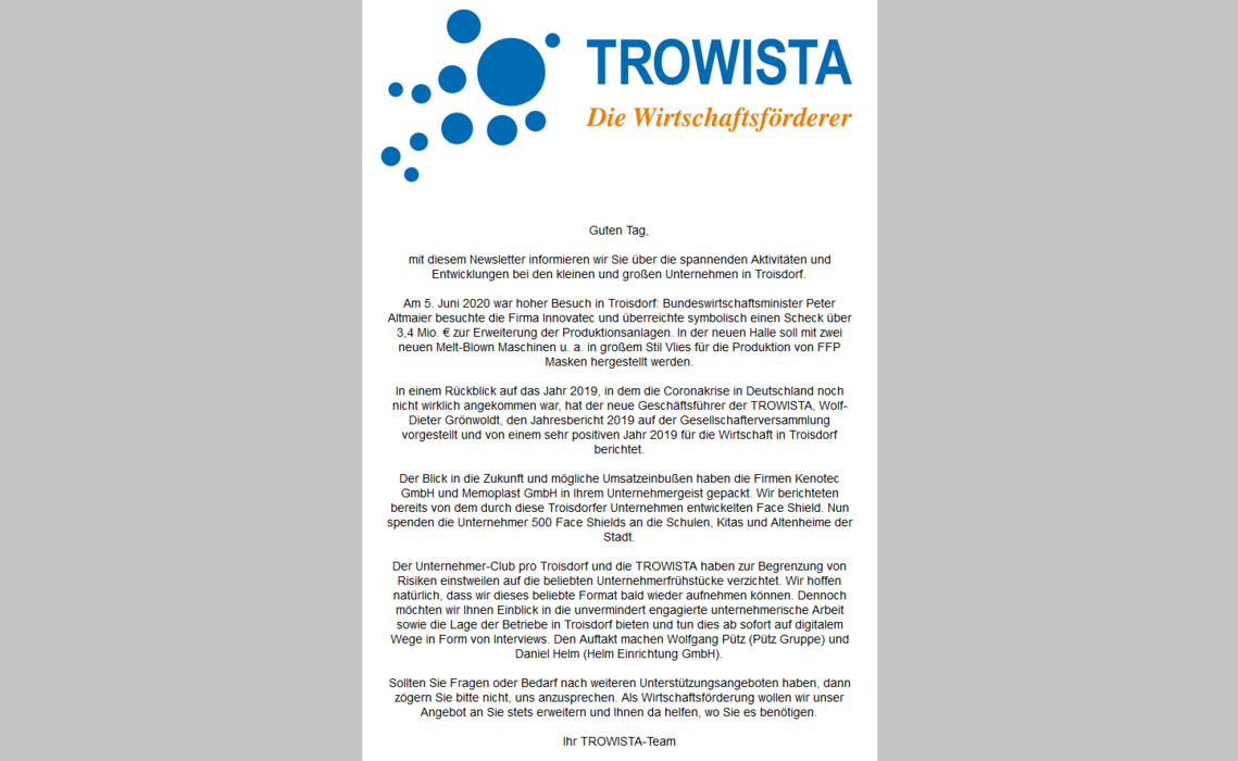 Den TROWISTA-Newsletter vom 15.06.2020 finden Sie hier.