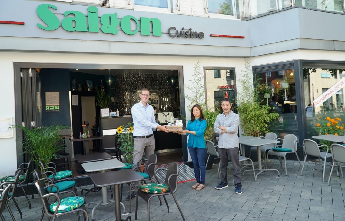 TROWISTA-Wirtschaftsförderer Fabian Wagner gratulierte den Eheleuten Le zur Eröffnung des Restaurants und überreichte das Troisdorfer Willkommenspaket: „Saigon Cuisine rundet das gastronomische Angebot rund um den Fischerplatz hervorragend ab. Insgesamt zeichnet sich Troisdorf durch eine große Vielfalt an attraktiven Gastrokonzepten aus - für wirklich jeden Geschmack ist etwas mit dabei“, so Wagner.