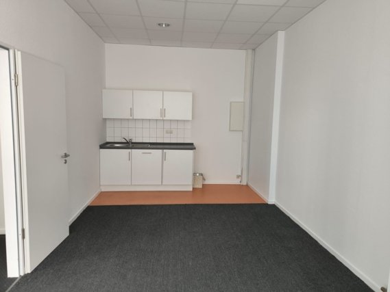 Die Fläche besteht aus einem großen, offenen Hauptraum, der sich für unterschiedliche gewerbliche Nutzungen eignet, sowie einem separaten Büroraum mit integrierter Pantryküche. Eine Toilette befindet sich ebenfalls innerhalb der Einheit.