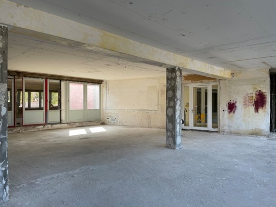 Die Büroflächen sind bereits entkernt worden und können individuell nach Mieterwunsch ausgebaut und geteilt werden.