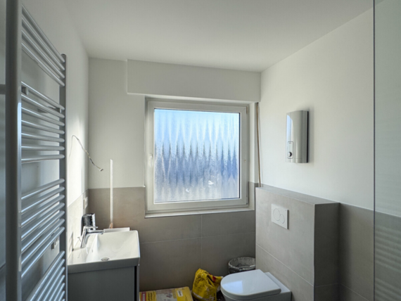 Die Einheit liegt im 1. Obergeschoss eines 1971 errichteten Bürogebäudes und wurde vollständig renoviert. Die Bürofläche verfügt über eine klare Raumaufteilung mit zwei Büroräumen sowie einem separaten Pausenraum mit Küche. Ergänzend stehen ein modernisiertes Badezimmer mit Dusche und Fenster sowie ein Aktenarchiv im Keller zur Verfügung.