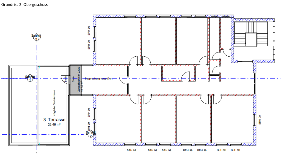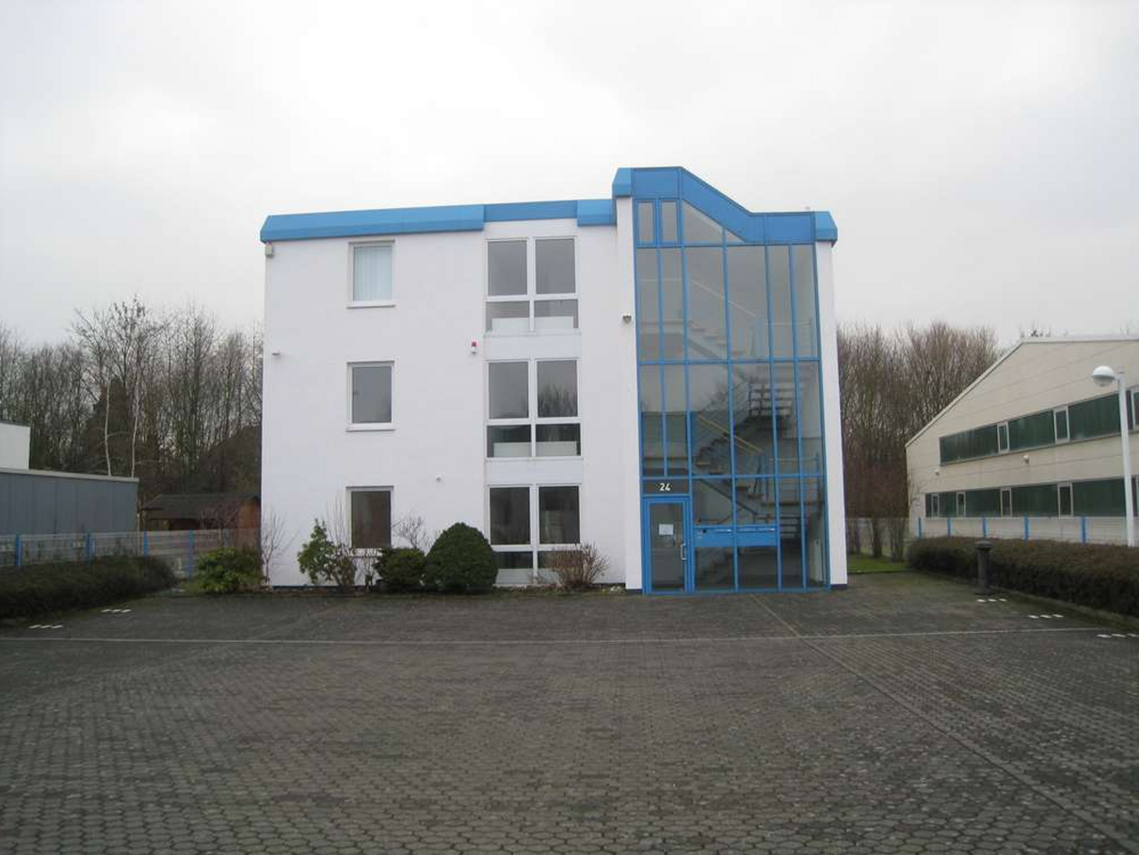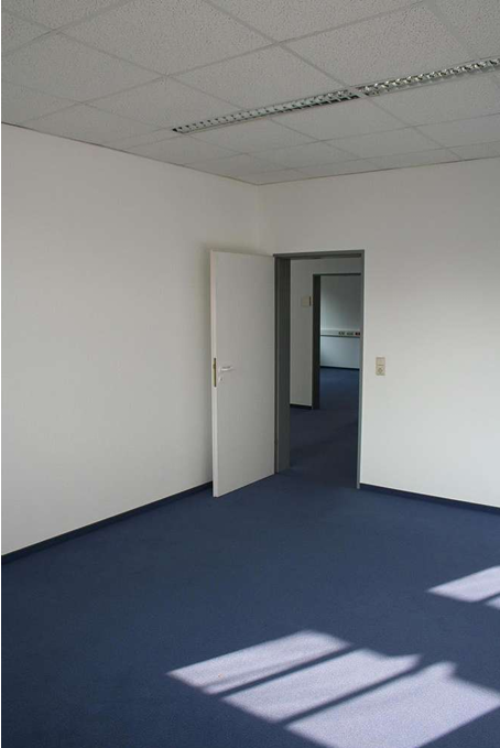 In einem Bürogebäude aus dem Jahr 1994, das 2014 durch einen Anbau erweitert wurde, steht im 2. Obergeschoss eine abgeschlossene Büroetage mit ca. 222,04 m² zur Verfügung. Die Fläche umfasst mehrere Büroräume, eine Teeküche, getrennte Sanitärbereiche sowie einen Serverraum. Die Büroräume sind mit Teppichboden, Arbeitsplatzleuchten und EDV-Verkabelung ausgestattet. Auf der Sonnenseite verfügen die Räume über elektrische Außenjalousien. Durch den Anbau ist zudem eine Dachterrasse entstanden.
