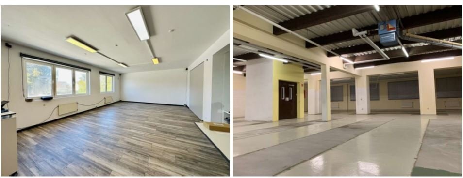 Zur Vermietung steht eine zweiteilige Gewerbeeinheit mit einer Gesamtfläche von ca. 670 m².