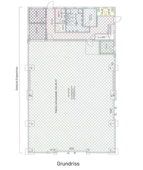 Zur Vermietung steht eine attraktive Gewerbefläche mit großzügiger Halle sowie angeschlossenen Büro-, Sanitär- und Schulungsbereichen. Die Flächen eignen sich ideal für Produktion, Lager, Schulungen oder eine Kombination aus Verwaltung und gewerblicher Nutzung.