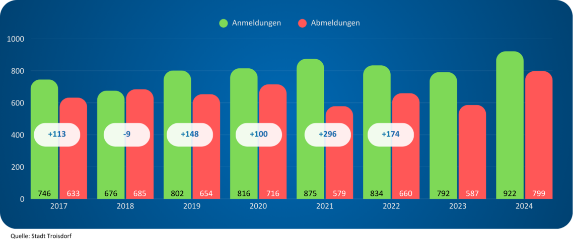 Im Jahr 2024 gab es in Troisdorf insgesamt 922 Gewerbeneuanmeldungen (Quelle: Stadt Troisdorf)